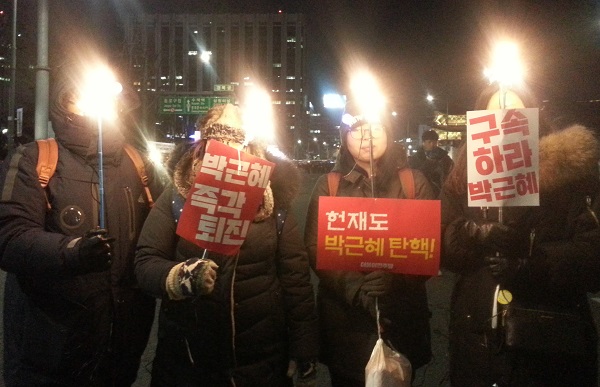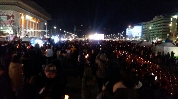 한편, 지난 10월 29일 첫 범국민대회에서 10만이 모였고, 11월 5일 30만, 12일 120만, 19일 100만, 26일 190만, 12월 3일 230만, 10일 104만 명이 전국에서 박근혜 대통령 퇴진을 외쳤다.