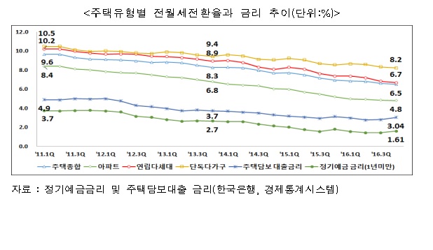 [뉴스엔뷰] 주택 전월세전환율이 지속적인 하락세를 보이고 있는 것으로 나타났다.