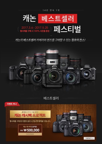 캐논은 이를 기념해 오는 5월25일까지 '캐논 베스트셀러 페스티벌' 이벤트를 진행한다고 6일 밝혔다.