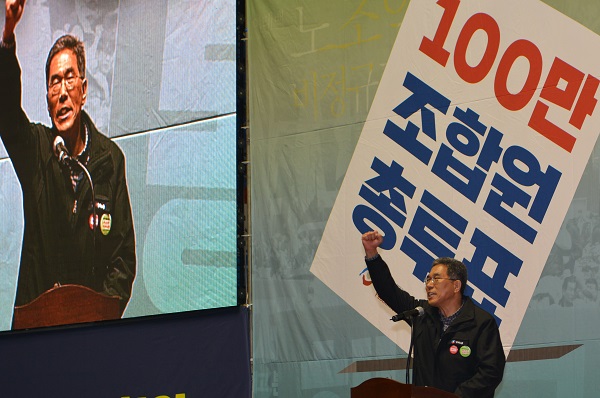 대회사를 한 김주영 한국노총위원장은 “반노동자정권을 끝장내고 노동자가 존중받은 친노동자정권을 세워야 한다”며 “노동적폐를 청산하고 노동정책을 근본적으로 바꾸어야 한다”고 강조했다.