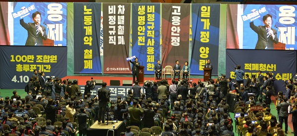 한편 한국노총은 오는 4월 10일부터 25일까지 ‘정권교체, 적폐청산, 친노동자정권 수립을 위한 제19대 대통령선거 한국노총 지지후보 결정에 관한 건’으로 100만 조합원 대상 총투표에 들어가 대선후보를 결정하게 된다.