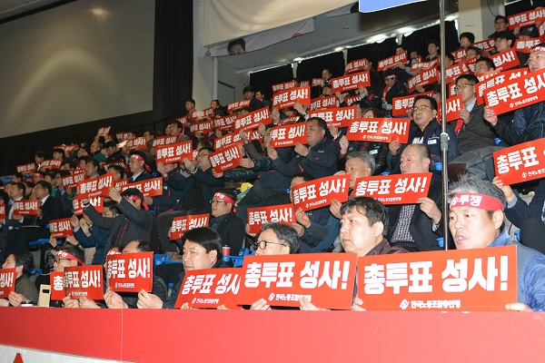 한국노동조합총연맹(위원장 김주영)은 22일 오후 1시 30분부터 서울 잠실 학생체육관에서 적폐청산, 사회개혁, 친노동자정권 수립 등을 내걸고 100만 조합원 총투표를 위한 전국단위노조대표회의를 개최했다.
