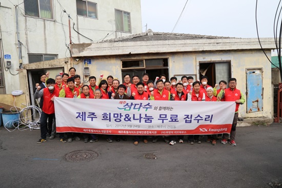 광동제약 임직원과 (사)희망의 러브하우스 자원봉사자들이 제주도를 방문해 노후 주택을 보수해주는 ‘무료 집수리 봉사활동’을 펼쳤다고 27일 밝혔다.