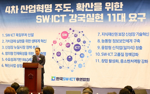 “SW·ICT는 우리 경제에서 GDP의 30%, 수출의 27.4%를 차지하는 위상을 갖고 있다. 4차산업혁명 추진의 핵심 칩으로서 미래를 이끌어가는 유망 기술분야이기도 하다. 그러나 국가 ICT 경쟁력이 취약하기에 이를 회복하기 위한 5대 선결과제가 필요하다.”