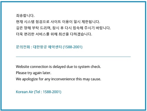 이에 따라 대한항공은 서버마비로 국내·외에서 출발하려던 여객기 39편이 운항 지연됐다.