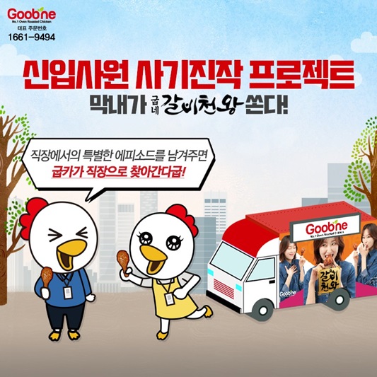 굽네치킨은 특별한 사연을 남겨준 신입사원을 선정해 굽네치킨 시식차인 '굽카'와 함께 해당 회사를 방문할 예정이다. 선정된 신입사원의 직장에는 굽네치킨의 대표 히트메뉴인 굽네 갈비천왕이 전달된다.