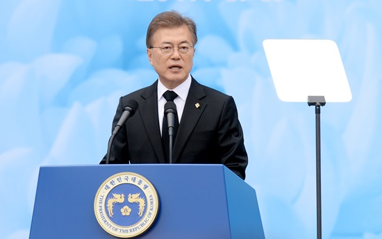 문 대통령은 추념사에서 "국회가 동의 해준다면 국가보훈처의 위상부터 강화하겠다. 장관급 기구로 격상하겠다"며 "국가유공자와 보훈대상자, 그 가족이 자존감을 지키며 살아갈 수 있도록 하겠다"고 말했다.