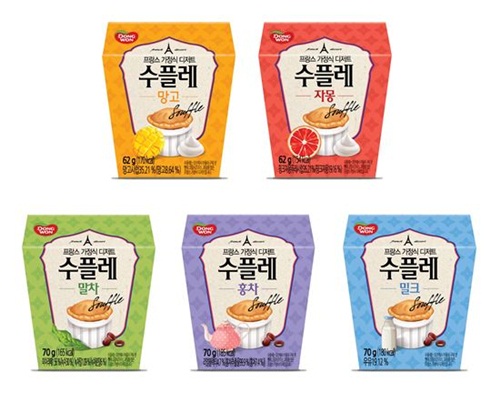 수플레는 거품을 낸 달걀흰자에 치즈 등을 섞어서 구워낸 프랑스의 전통 빵이다. 동원F&B는 부드러운 수플레 빵에 크림치즈와 과일, 팥고물 등을 올린 후 얼려 디저트로 만들었다. 자몽과 망고·말차·홍차·밀크 5가지 맛이다.