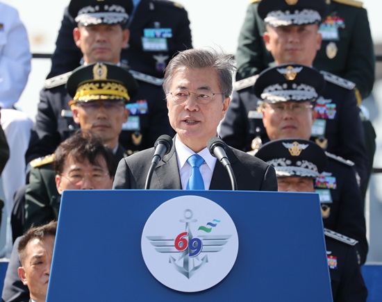 문 대통령은 "안보는 말로 외치는 것이 아니라 행동으로 실천하는 것"이라며 "강력하고 신속한 국방개혁을 통해 우리 군은 반드시 평화를 만드는 강한 군대, 국민을 지키고, 국민이 사랑하는 국민의 군대로 거듭날 것"이라고 덧붙였다.