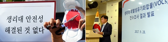 한편 지난 3월 여성시민단체가 모 대학 환경융합학부 교수에게 의뢰한 '생리대 방출물질 검출 시험' 발표에서 "국내 일부 생리대와 팬티라이너 등 총 11개 제품에서 약 200종의 총휘발성유기화합물(TVOC)이 방출됐다"라고 밝혔다. 또 지난 8월 여성시민단체는 릴리안 사용자들이 생리대를 쓴 후 생리통 등의 불편을 겪은 사례를 3일동안 3000여건을 받았다고 밝혔다.