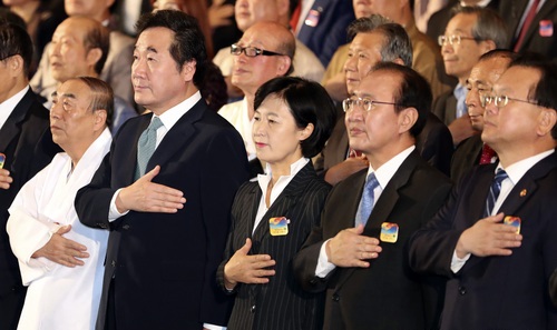 이날 기념식에는 이낙연 국무총리와 추미애 더불어민주당 대표 그리고 노회찬 정의당 원내대표 등 정치권과 인사와 종교 지도자가 참석해 개천절을 경축했다.