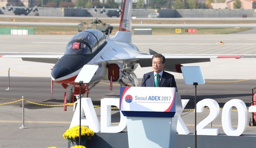 문 대통령은 "이번 전시회가 각국의 산업발전, 더 나아가 공동안보와 세계평화를 추구하는 상호교류의 장이 되기를 기대한다"고 밝혔다.