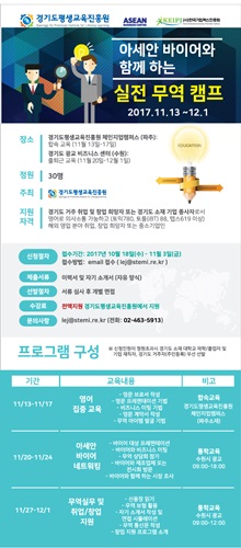 ‘무역실무 영어캠프’는 다음달 13일부터 12월 1일까지 파주 체인지업캠퍼스(구 경기영어마을)에서 개최된다.