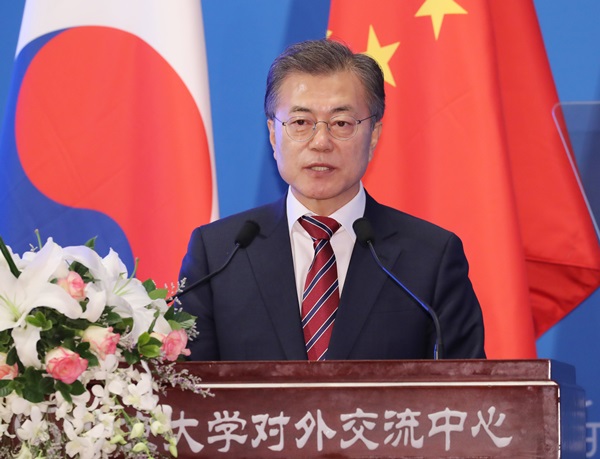 또 문 대통령은 북한의 핵·미사일 위협과 관련 "북한의 핵 개발 및 이로 인한 역내 긴장 고조는 한국뿐만 아니라 중국의 평화와 발전에도 큰 위협이 되고 있다"고 지적했다.