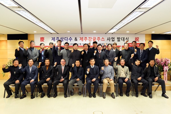 [뉴스엔뷰] 광동제약은 지난16일 서울 서초구 본사에서 ‘제주삼다수 & 제주감귤주스 사업 발대식’을 개최했다.