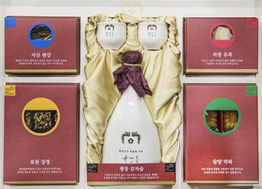 설 선물은 감자술 전통주 세트로 강정, 유과, 약과, 편강으로 구성됐다.