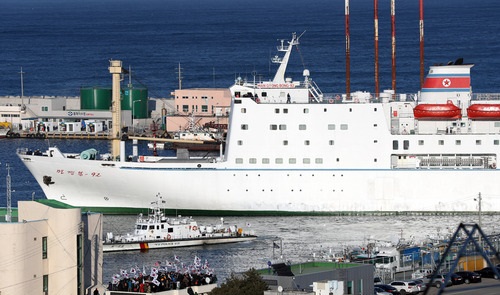 이날 오전 9시 50분 동해 해상경계선을 통과한 만경봉 92호는 우리 호송함의 안내를 받으며 입항했다.