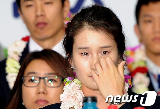 기보배는 인천국제공항에서 14일 오후 5시 경 진행된 올림픽 한국 선수단 기자회견에서 "2관왕이 돼 말로 표현할 수 없을 만큼 기뻤지만 네티즌이 쓴 글을 보고 속상했다"며 "양궁선수들은 아침부터 훈련을 시작해 야간에 라이트를 켜고 열심히 준비한다. 그런 말씀을 안 하셨으면 좋겠다"고 속상한 마음을 털어놨다.