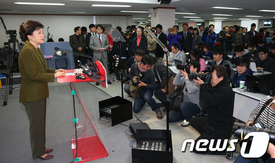 [뉴스엔뷰] 박근혜 새누리당 대선 후보는 25일 오전 여의도 당사에서 '후보등록에 즈음한 입장발표' 기자회견을 열고 비례대표 의원직 사퇴를 밝히는 가운데 이번 대선에서 패배할 경우 정계에서 은퇴하겠다는 뜻도 분명히 했다.
