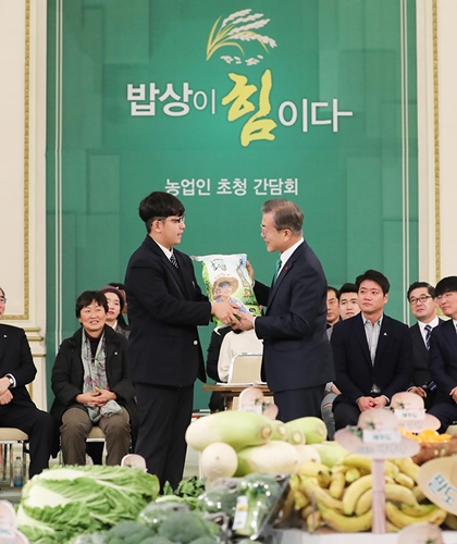 '밥상이 힘이다'라는 슬로건으로 열린 이번 간담회는 문 대통령이 전국 농업인 대표들을 청와대로 초청해 그간의 노고를 격려했다.