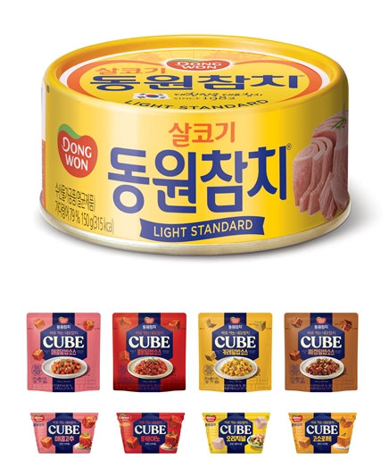 '동원참치 큐브'는 바로 먹을 수 있는 컵 타입 4종과 덮밥 소스 형태로 뿌려 먹는 파우치 타입 4종으로 구성됐다.