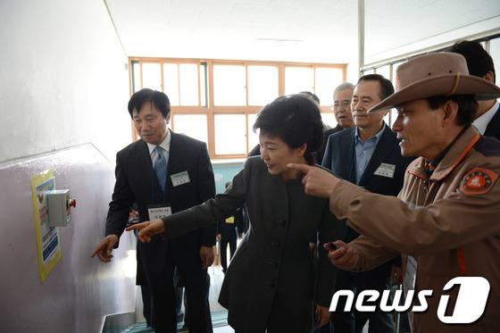 한편, 교무실을 방문한 박 대통령이 “교내에 설치된 폐쇄회로(CC)TV가 몇 대나 설치돼 있는지, 부족하지 않는지”를 점검했다.