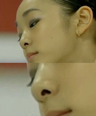 이 사진에는 김연아의 클로즈업된 콧구멍이 완벽한 하트 모양을 하고 있다.
