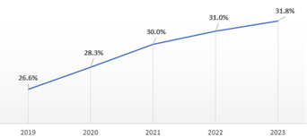 * 1인가구 비율(%) : (‘17)24.7 → (’18)25.2 → (‘19)26.6 → (’20)28.3 → (‘21)30.0 → (’22)31.0 → (‘23)31.8
