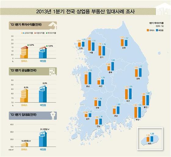 매장용 빌딩은 서울·부산·경기·경남·제주를 제외한 전 지역에서 10%를 넘는 것으로 조사됐다.