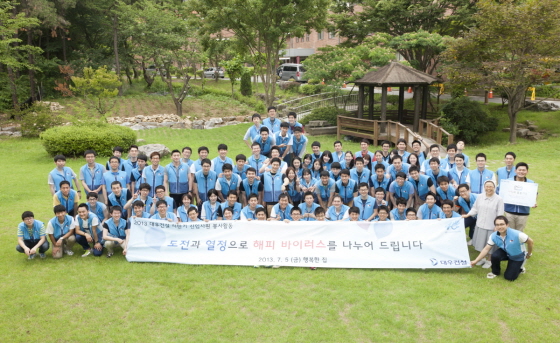 대우건설은 지난 2007년부터 사내 자원봉사조직을 확대구성하며 모든 임직원이 봉사활동에 참여하는 ‘사랑나눔 캠페인’을 실시하고 있으며, 지난해부터는 각 본부별로 격월로 돌아가며 릴레이 봉사활동을 진행하고 있다.