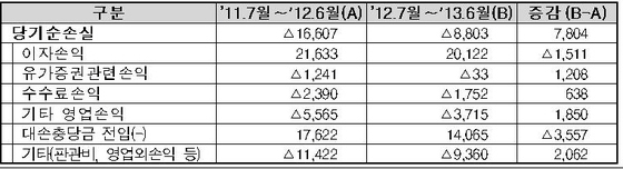 금융감독원은 올 상반기 말 현재 영업 중인 91개 저축은행의 2012회계연도(2012년 7월~2013년 6월) 당기순손실은 8803억원으로, 2011회계연도(-1조7000억원) 보다 7804억원 적자규모가 줄었다고 31일 밝혔다.