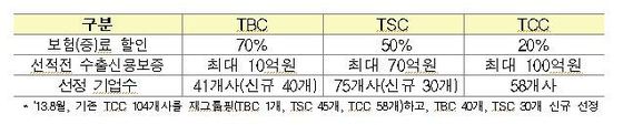 선정된 중소중견기업은 성장단계에 따라 최대 70%의 보험료를 할일 받을 수 있고 선적적 수출신용보증 한도도 최대 10억원까지 100억원까지 지원받을 수 있다. 아울러 코트라, 무역협회, 중소기업진흥공당 등 다른 수출지원기관들이 운영중인 프로그램도 함께 혜택을 받을 수 있다고 산업부는 설명했다.