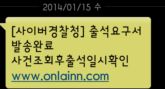 [뉴스엔뷰] 최근 사이버경찰청 출석요구서 문자를 받는 경우가 많이 발생하고 있는 것으로 드러났다. 하지만 이들 문자는 100% 스미싱 문자라는 것.