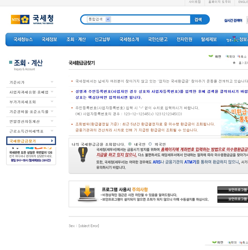 [뉴스엔뷰] 한국인터넷진흥원이 운영하는 주민등록번호 클린센터 홈페이지 등이 23일 마비된 있는 가운데 국세청 연말정산 환급금 홈페이지 역시 다소 원활하지 않고 있다. 하지만 주민등록번호 클린센터 홈페이지처럼 완전히 이용하지 못하는 것은 아니다.