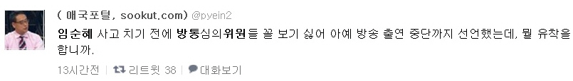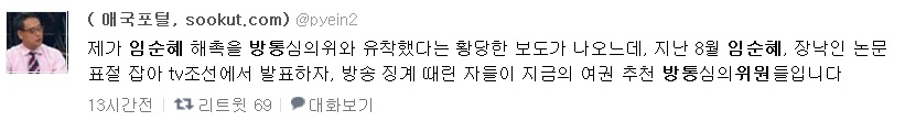 한편, 방통심의위는 23일 정기회의를 열어 임순혜 방통위원을 해촉했다. 임 위원은 “경축! 비행기 추락, 바뀐애 즉사”라는 트윗을 리트윗해서 논란이 일었다.