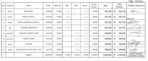 다잇 환율을 적용하면 650달러는 최소 71만원 가량 된다. 하지만 아프리카 이주노동자들의 예금은행 거래명세표를 보면 급여는 59만원에서 62만원에 불과했다.