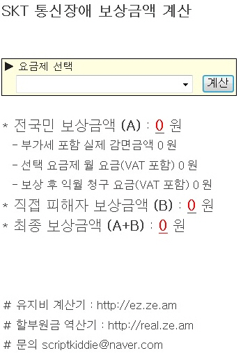 온라인상에는 전날 발생한 SKT 통신장애와 관련, SKT 통신장애 보상 확인 프로그램(http://clien.hosting.bizfree.kr/fskt.php)이 소개됐다.