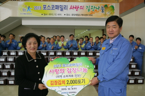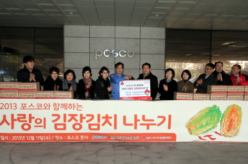 ‘사랑의 김장김치 나누기’는 포항제철소가 사회복지공동모금회에 지정기탁한 기금으로 마련된 사업으로, 포항제철소는 2008년부터 매년 김장김치 나눔사업을 실시하고 있다.