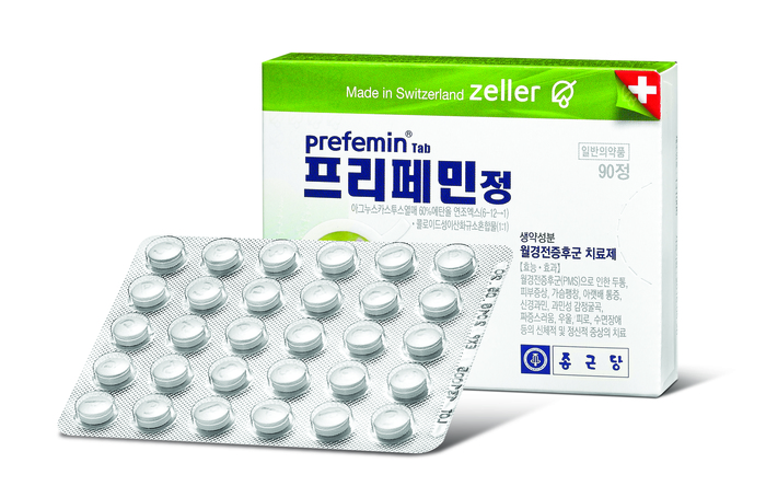 ‘프리페민정’은 유럽에서 월경전증후군과 월경불순에 임상적인 효과와 안전성을 입증 받은 제품으로, 스위스 생약전문회사 ‘젤러(Zeller)’에서 생산, 종근당이 수입한 일반의약품이다. 이 제품은 아그누스카스투스 열매에서 추출한 국내 최초 생약성분(식물성분) 월경전증후군 치료제이다.