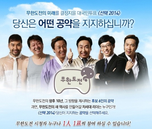[뉴스엔뷰] MBC 무한도전 ‘선택!2014’의 투표소 위치가 공개됐다. 무한도전은 향후 10년을 이끌어갈 차세대 리더를 선출하는 선거를 진행하고 있다.