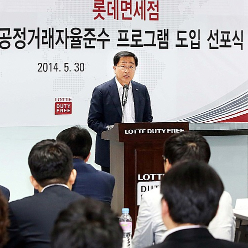 이날 선포식에서 이홍균 롯데면세점 대표이사는 전 임직원들을 대표해 공정거래자율준수 의지를 다짐하는 메시지를 낭독하고, 총 16명의 자율준수 관리자를 임명했다.