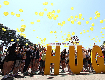 또 HUG가 새겨진 풍선을 하늘로 날리며 사랑을 나누자는 캠페인의 서막을 알렸다.